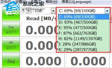 2、点击图中“All”按钮,检测全部的硬盘速度。