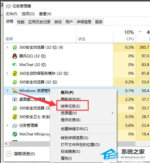 2、在”任务管理器“界面,在进程中找到”Windows资源管理器“。