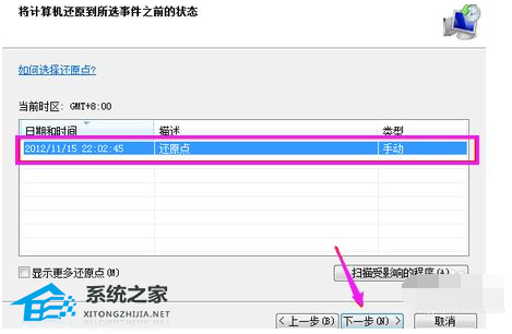 5. 还原点一般默认都是出厂设置,点击“下一步”。