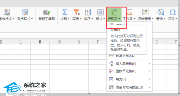3、在开始菜单栏,找到右上角的行和列选项框。