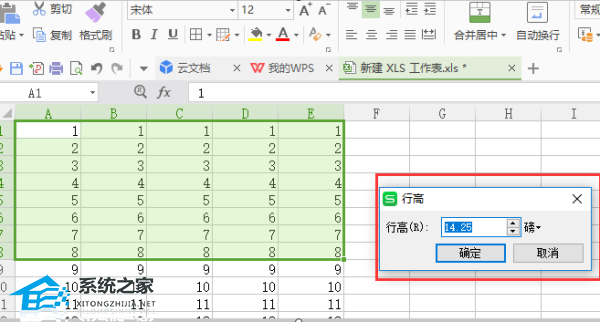 6、设置完成后,点击确定按钮,显示内容就是调整后的行高数值。