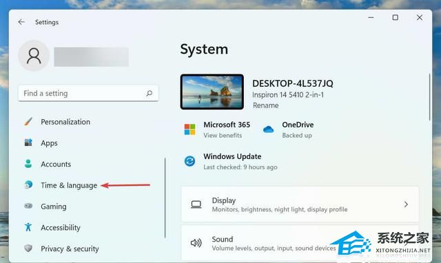 按Windows+I启动设置应用程序,然后从左侧导航窗格中列出的选项卡中选择时间和语言选项卡。