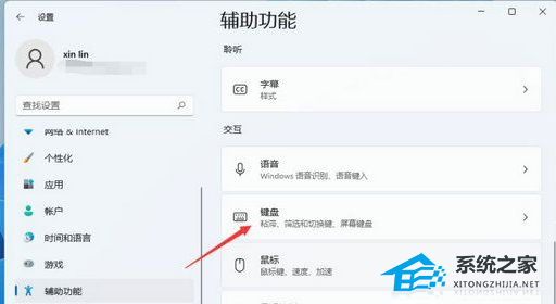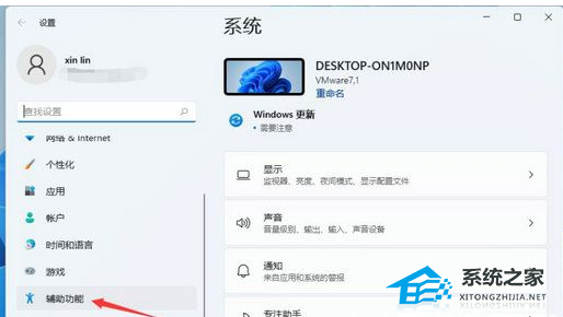 第二步:在打开的win11系统设置窗口中,鼠标点击左侧菜单中的 辅助功能 选项。
