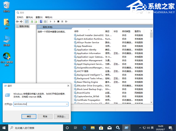 1、在桌面上按下【win+R】组合快捷键,输入【services.msc】,然后回车进入【服务】界面。