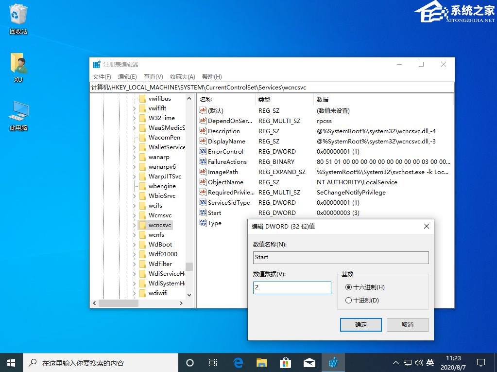3、接着双击【start】键,将参数更改为【2】,然后保存,重启计算机即可。