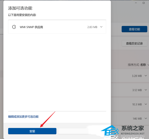 5、确定要安装的内容是【WMI SNMP 供应商】,再点击【安装】,最后等待安装完成即可。
