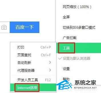 2、选择“工具”点击“Internet选项”。