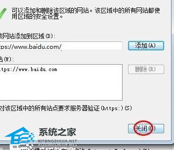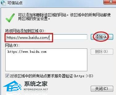 5、输入信任的网址后点击“添加”。
