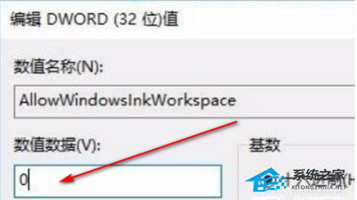 8、在弹出的编辑窗口中,把其数值数据修改为0,最后点击确定按钮。