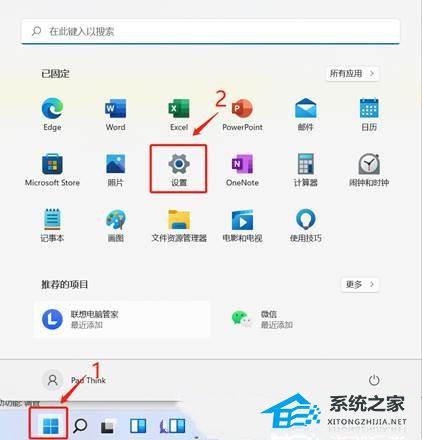 1、按键盘上的【Windows 徽标键】,或点击任务栏上的【开始图标】,在打开的已固定应用中,找到并点击【设置】。