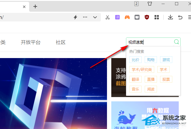 2、进入应用市场页面之后,我们在右上角的搜索框中输入“视频速度”字样,然后点击回车键。
