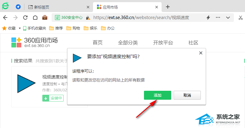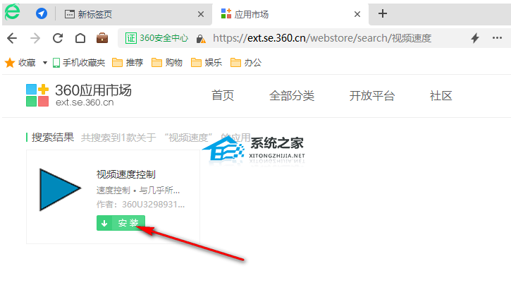 3、在搜索结果页面中,我们可以看到视频速度控制插件,点击打开该插件中的“安装”选项。
