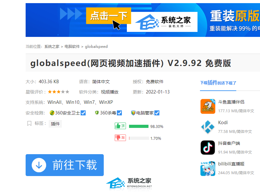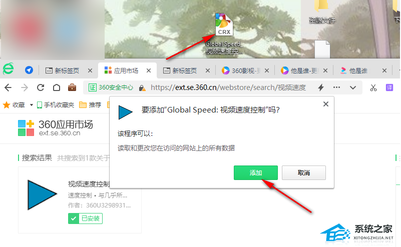 5、如果360安全浏览器自带的视频速度控制插件无法对爱奇艺等网站进行加速,我们可以将该插件右键单击选择“删除”,然后打开“http://xitongzhijia.mg188.cn/soft/238088.html”链接,下载该链接中的倍速插件。