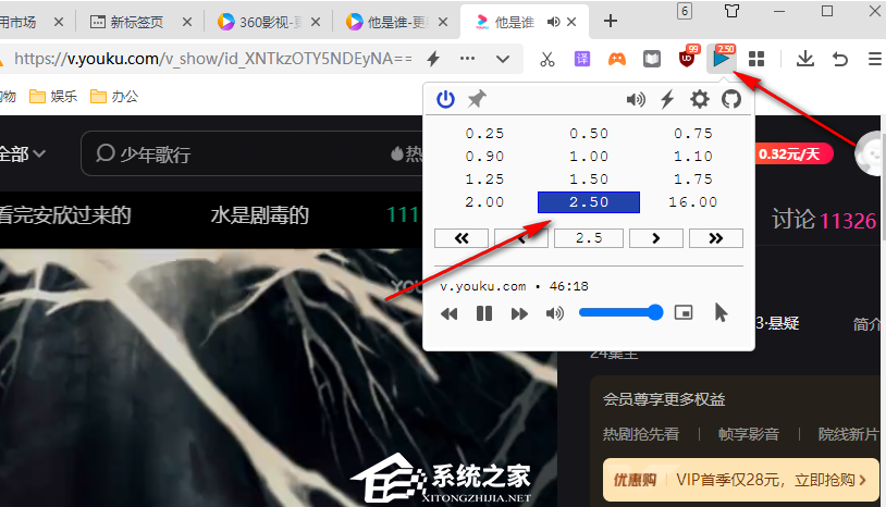 以上就是系统之家小编为你带来的关于“360浏览器看视频怎么调倍速?”的全部内容了,希望可以解决你的问题,感谢您的阅读,更多精彩内容请关注系统之家官网。