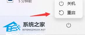 2、然后按住键盘上的“shift”,鼠标点击其中的“重启”。