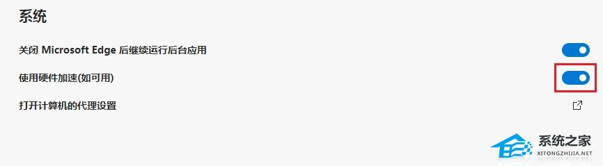 4、在系统设置中可以看到“使用硬件加速”这一项,如果此时是开启状态则点击将其关闭,如果是关闭状态则将其开启即可。