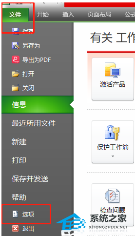 2、需要用户点击左上角处的文件选项,在拓展出来的选项卡中用户选择选项功能。