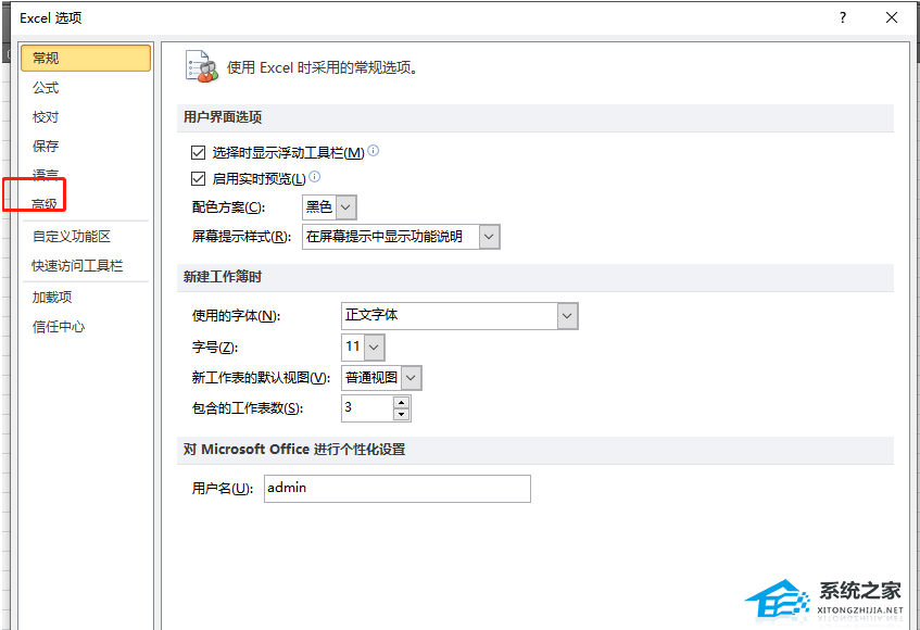 3、这时进入到excel选项窗口,用户在左侧的选项卡中点击高级选项卡,右侧页面会显示出相关的功能选项。
