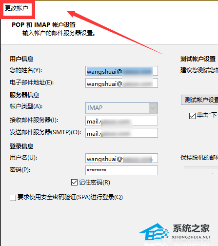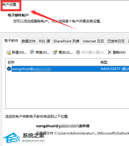 1、 打开Outlook后,点击左上角的“账户设置”,进入账户设置的页面后,选中自己的邮箱账户,点击更改(A),进入更改账户,如下图所示。