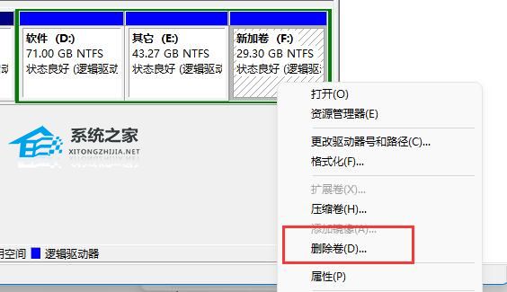 1、如果是新增了不需要的分区,那么只要右键该分区。