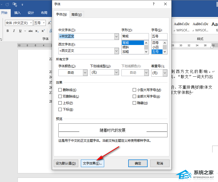 3、进入字体页面之后,我们在该页面的左下角找到“文本效果”选项,点击打开该选项。