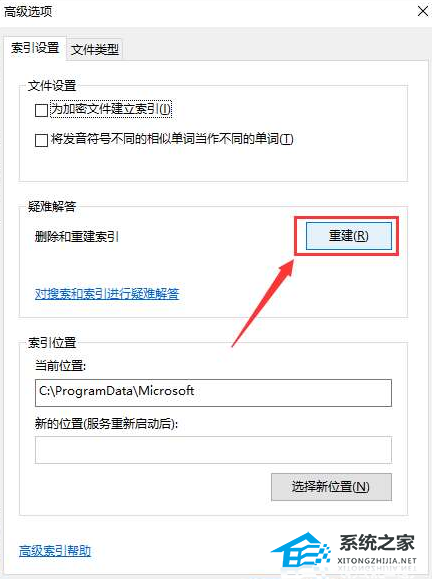 4、第一个【索引设置】选项卡中间部分删除和重建索引,点击【重建】。