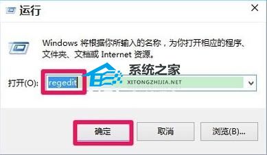 1. 首先按住电脑键盘快捷键 WIN + R,输入 regedit 点击确定打开“注册表编辑器”。