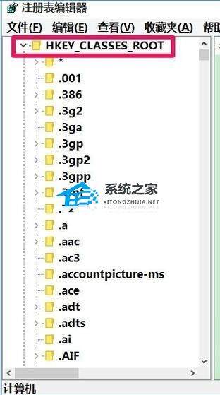 2. 然后在打开的注册表编辑器窗口,我们展开HKEY_CLASSES_ROOT。