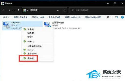 完成后,选择已连接的网卡设备,右键选择属性。