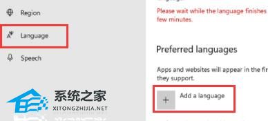 2、在时间和语言中点击左边栏的“Language”选项,然后在右侧点击“Add a language”。