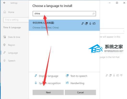 3、接着在上方搜索框输入“china”,选择中文并按下方的“Next”。
