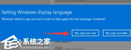 5、然后系统需要注销来重置语言,点击“Yes,sign out now”,之后等待注销并重启就可以了。