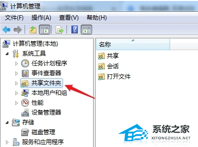 1. 打开电脑,在桌面右键【我的电脑/电脑】弹出菜单,选择【管理】进入窗口,在左栏点击【系统工具】-【共享文件夹】。