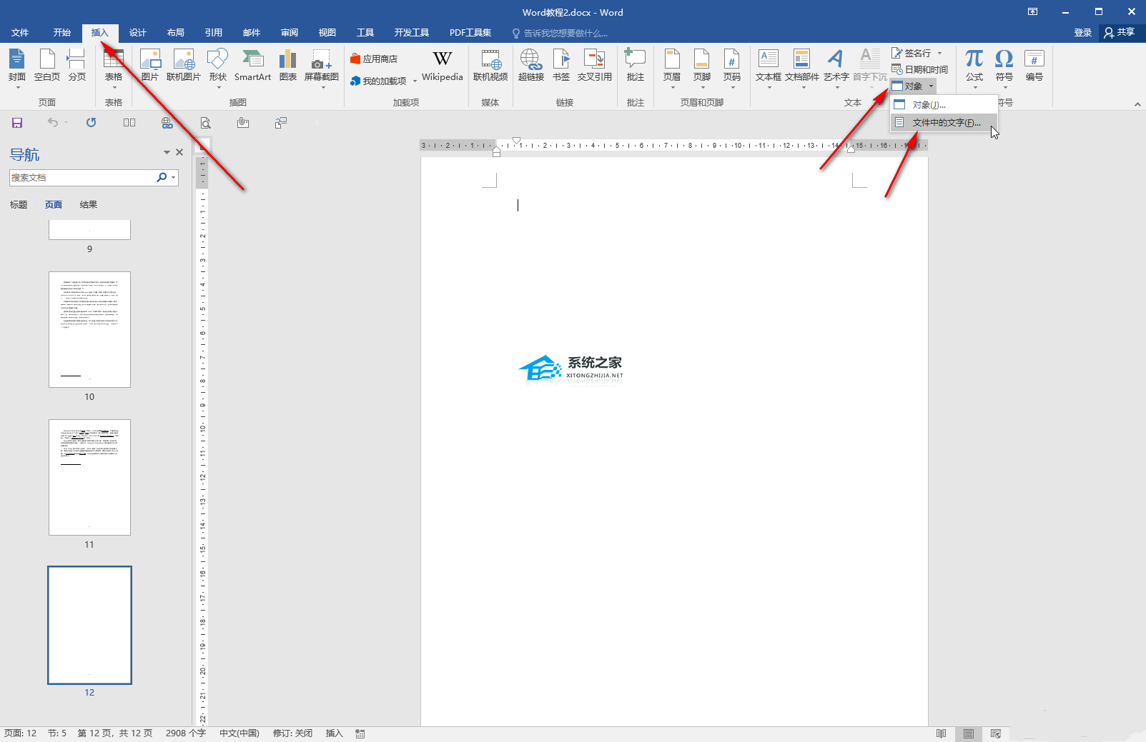 另外打开一个新的Word文档,在“插入”选项卡中点击“对象”——“文件中的文字”,然后在打开的窗口中浏览找到无法编辑的Word文档,进入导入就可以了。