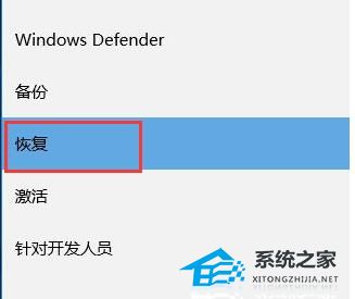 2、接着进入“更新和安全”并点击左侧边栏的“恢复”。