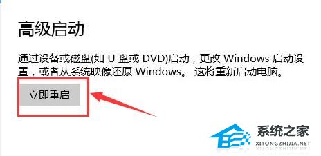 3、接着找到高级启动,点击下方“立即重新启动”。(这时候会直接重启)