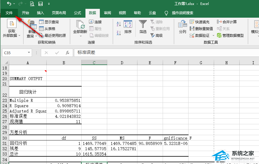 2、进入Excel页面之后,我们先点击打开左上角的“文件”选项,进入“文件”页面。