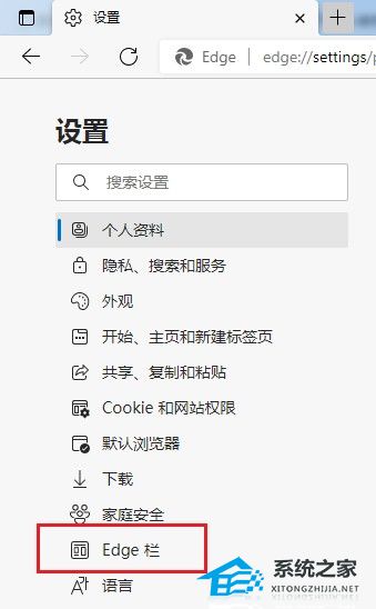 3、这时会进入Edge浏览器的设置页面,在页面左侧的导航菜单中可以看到“Edge栏”这一项,点击切换到该页面中。