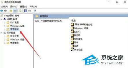 2、在打开的本地组策略编辑器窗口中点击计算机配置/管理模板。
