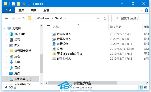 2、shell:sendto,就是右键菜单中“发送到…”的内容选项。