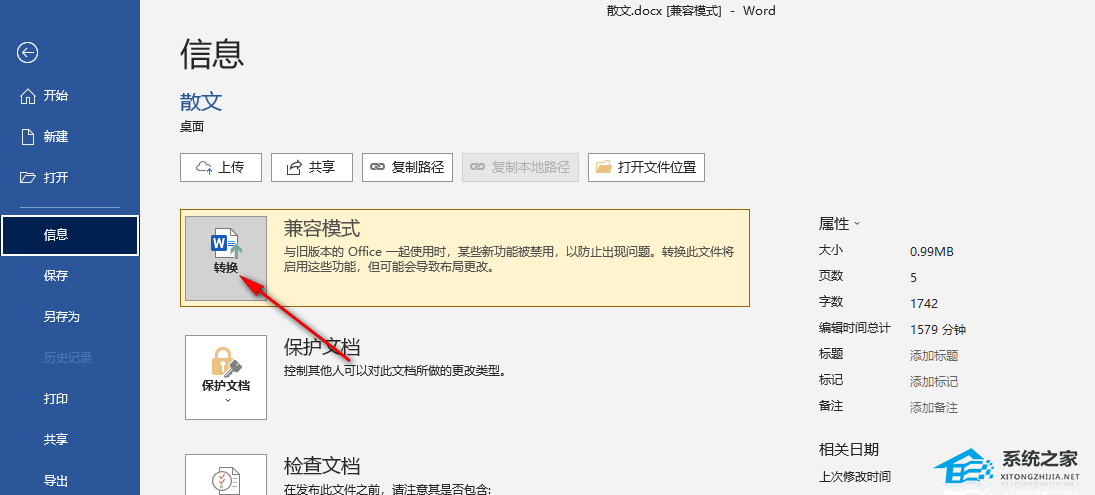 以上就是系统之家小编为你带来的关于“Word兼容模式怎样换成正常模式?”的全部内容了,希望可以解决你的问题,感谢您的阅读,更多精彩内容请关注系统之家官网。