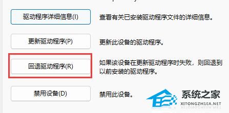 5、最后在驱动程序下选择“回退驱动程序”即可。
