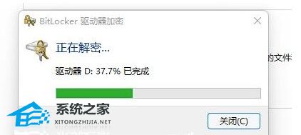 5、等解密进度条走完,就可以解除Win11硬盘加密了。