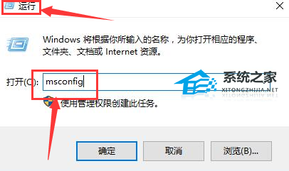 1、“win+R”快捷键开启运行,输入“msconfig”,回车打开。