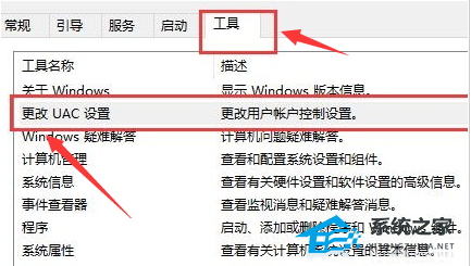 2、在打开的窗口界面中,点击上方中的“工具”选项,然后找到下方中的“更改UAC设置”双击打开。