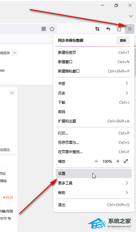 第三步:方法2.在界面右上方点击如图所示的三条横线图标,在展开的选项中点击“设置”;