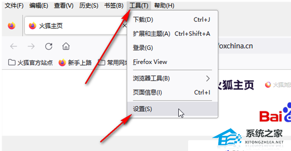 第二步:方法1.在界面上方点击菜单栏中的“工具”——“设置”,如果没有菜单栏,可以在界面上方空白处右键点击一下后点击“菜单栏”就可以调出来了;