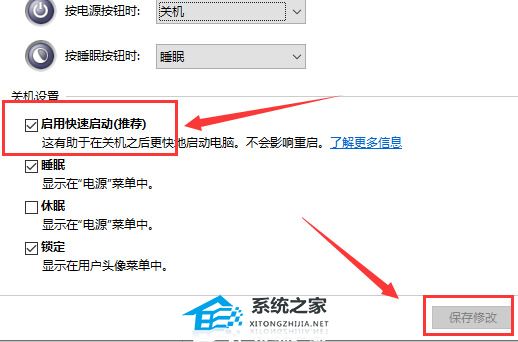 5、勾选启用快速启动(推荐),点击保存修改,重启即可。