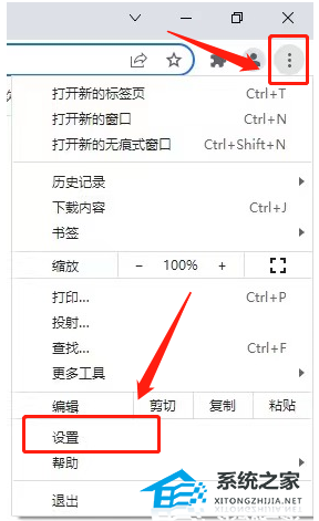1、如果还是不能解决的话,即可通过还原浏览器解决。首先鼠标点击google浏览器右上方三个点样式的按钮,然后选择“设置”打开它。