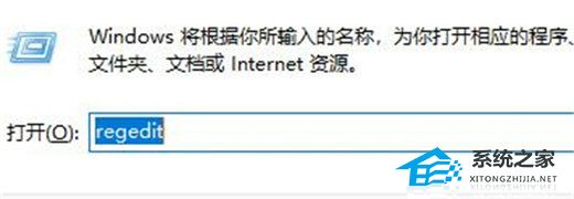 2. 在运行中输入“regedit”,回车确定,打开注册表编辑器。